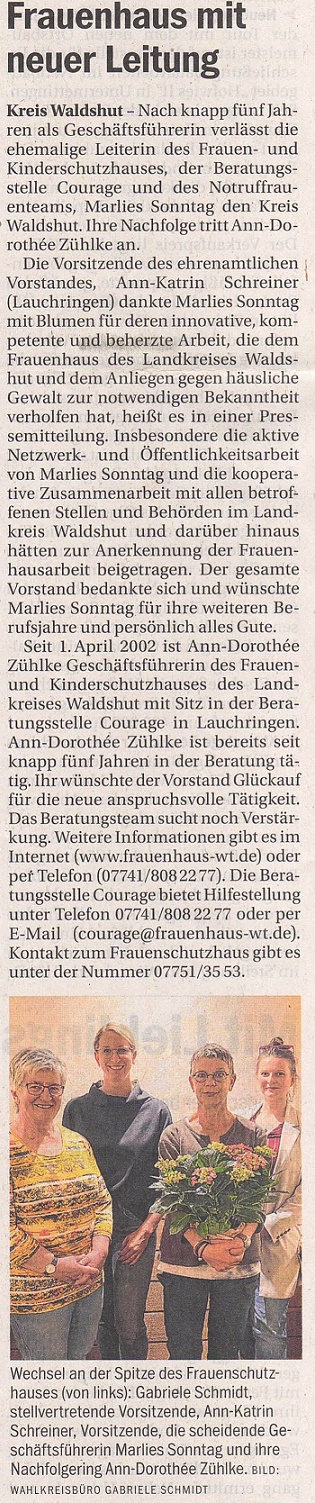 PresseSüdkurier Website23.12.2025Südkurier09.01.2026Südkurier04.12.2025Südkurier03.11.2025Südkurier19.09.2024Südkurier08.06.2024Südkurier12.04.2024Südkurier16.04.2024Südkurier31.10.2023Südkurier01.09.2023Südkurier22.09.2023Südkurier16.06.2023Südkurier19.06.2023Südkurier27.06.2023Südkurier01.06.2023Südkurier05.06.2023Südkurier06.06.2023Südkurier10.06.2023Amtsblatt Todtmoos05.05.2023SüdkurierMitteilungsblatt der Gemeinde Görwihl21.02.2023Südkurier28.02.2023Südkurier06.03.023Amtsblatt der Gemeinde Murg19.01.2023Südkurier20.01.2023Südkurier03.12.2022Südkurier12. 11 2022Südkurier17.11. 2022Südkurier21.11.2022Mitteilungsblatt Waldshut24.11. 2022Südkurier24.06.2022Badische Zeitung03.11.2022Südkurier04.05.2022Südkurier22.04.2022Südkurier21.02.2022Südkurier14.12.2021Südkurier17.11.2021Südkurier29.11.2021Südkurier30.10.2021Südkurier26.05.2021Südkurier12.06.2021Südkurier20.12.2020Anzeigenblatt Waldshut24.12.2020Badische Zeitung19.02.2021Südkurier28.11.2020Südkurier04.12.2020Südkurier26.09.2020Südkurier01.11.2020 (vollständiger Text liegt uns vor)Südkurier03.11.2020Südkurier02.07.2020Südkurier27.07.2020SüdkurierSüdkurier27.12.2019Südkurier28.04.2020Südkurier01.07.2020Südkurier31.08.2019Südkurier05.10.2019Südkurier26.11.2019Südkurier19.01.2019Südkurier29.06.2019Südkurier18.10.2018Hochreinanzeiger Ost 17.10.2018Südkurier08.10.2018Südkurier08.10.2018Hochreinanzeiger Ost 19.09.2018